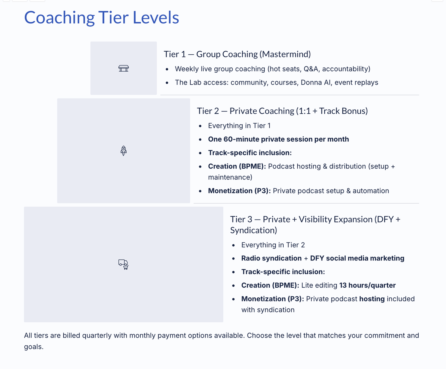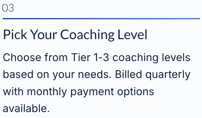 Add Coaching — Upgrade to Tier 1, 2, or 3 when you want personalized support