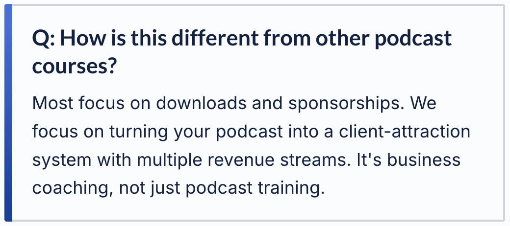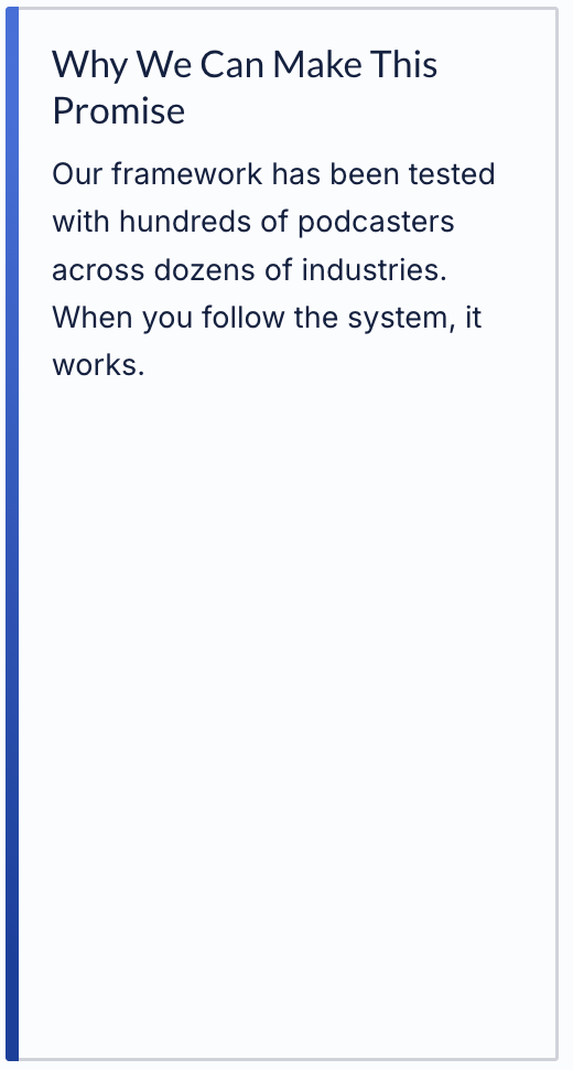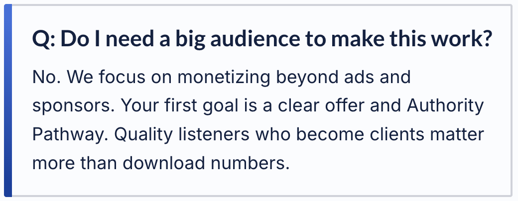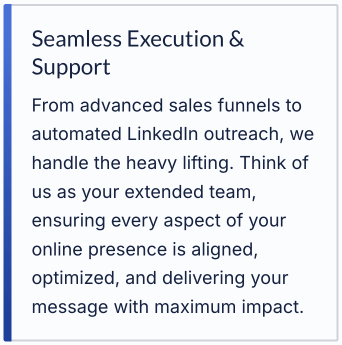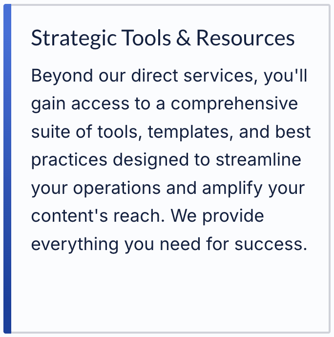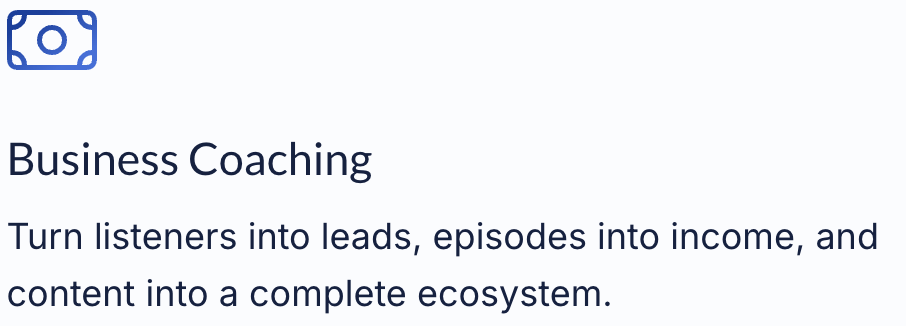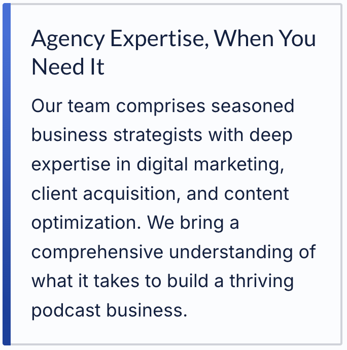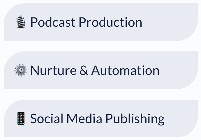 Looking for hands-on support to build out your podcast business? Our "done-for-you" agency services provide expert execution for your most critical needs. We can help with everything from custom funnels, advanced syndication strategies, and professional podcast production, to comprehensive content creation, LinkedIn outreach, and automation setup. Our team becomes your extended team, handling the heavy lifting so you can focus on your message and your clients.