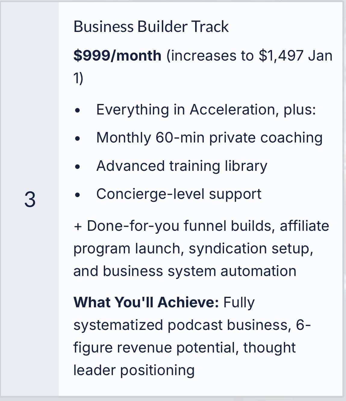 These specialized agency services are custom-quoted based on your specific requirements and are separate from our mastermind tracks. Let's discuss how we can elevate your podcast to a fully systematized, revenue-generating machine.